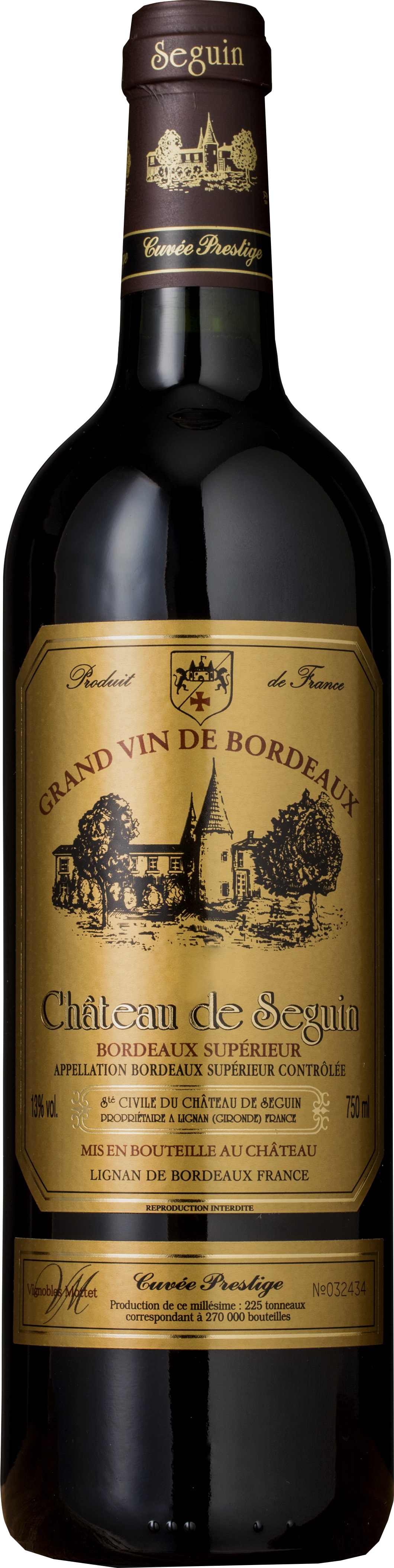 La propriété est ouverte au public et propose une offre touristique variée : salle de réception, gîte, chambres d’hôtes, boutique, salle de dégustation, cave et musée.Château De Seguin est une propriété familiale située sur une colline dans un terrain vallonné dans la commune de Lignan de Bordeaux au cœur de l’Entre-Deux-Mers. C’est un des plus grands domaines de l’appellation Bordeaux Supérieur avec presque 200 ha donc une centaine sont plantés en vignes pour la production de vin rouge. Des sols gravillonnés et sablonneux donnent des conditions idéales pour la culture des vignes. Les cépages utilisés sont Cabernet Sauvignon, Cabernet Franc, Merlot, Le Petit Verdot et Malbec. Notre gamme s’adresse à un large public en offrant des vins conviviaux et accessibles, issues de notre vignoble bordelais. Une offre complète et diversifiée répondant aux désirs et aux goûts de tous, à chaque instant de dégustation.