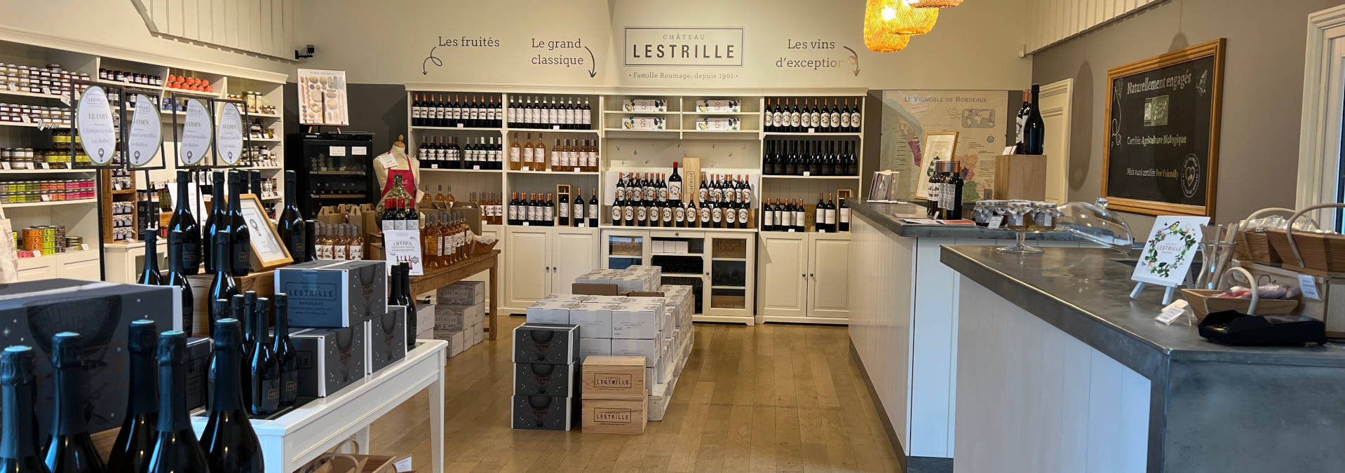 L'accueil qui nous a été fait lors de notre venu était parfait. La personne de la boutique était avenante et très compétente dans son domaine. La dégustation des produits s'est déroulé dans la bonne humeur et les vins proposés sont de qualité pour un tarif abordable. Je recommande vivement et fortement de se rendre à la boutique du château Lestrille. L'accueil qui nous a été fait lors de notre venu était parfait. La personne de la boutique était avenante et très compétente dans son domaine. La dégustation des produits s'est déroulé dans la bonne humeur et les vins proposés sont de qualité pour un tarif abordable. Je recommande vivement et fortement de se rendre à la boutique du château Lestrille. ...
